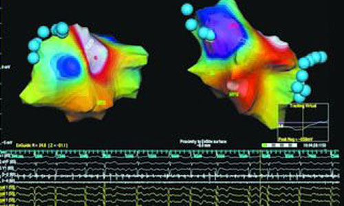 “這個技術讓我們基本上能夠確定心臟中最能顯示消融術良好結果的區域。利用添加到心房三維圖中的實時彩圖,可看到心臟中顯示心律失常信號的區域。這讓我們能夠空前準確地找到實施消融術的位置。”Schlindwein補充說。